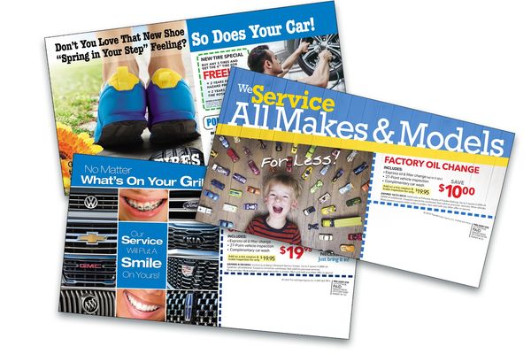 Our 6"x11" postcards hold their own in the impact category and are the quickest turn-around and most affordable means of getting your service marketing message to your customers or prospects. Ideal for conquest, recall, or reminder mailings, our postcards are easy, simple, and turn-key.